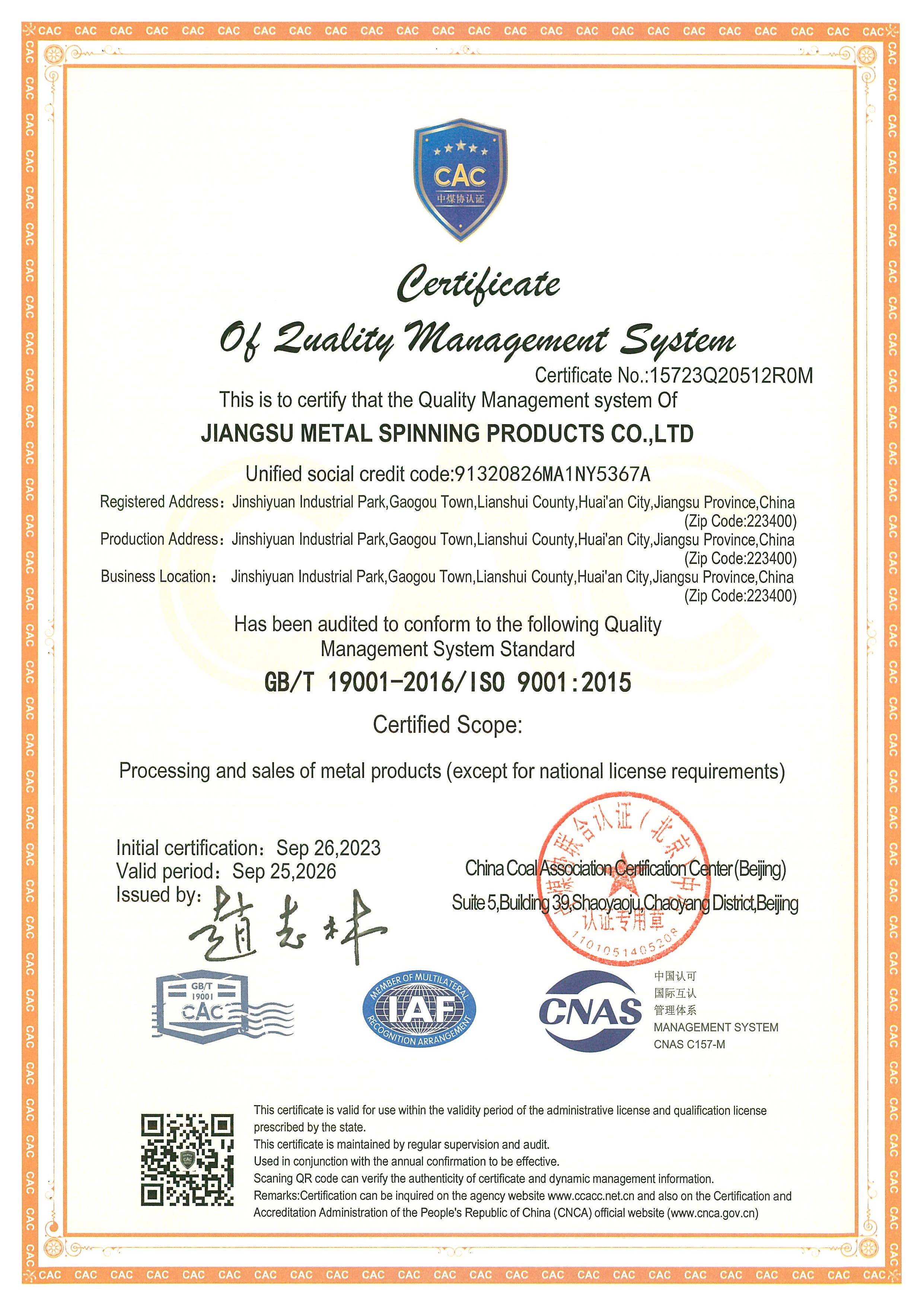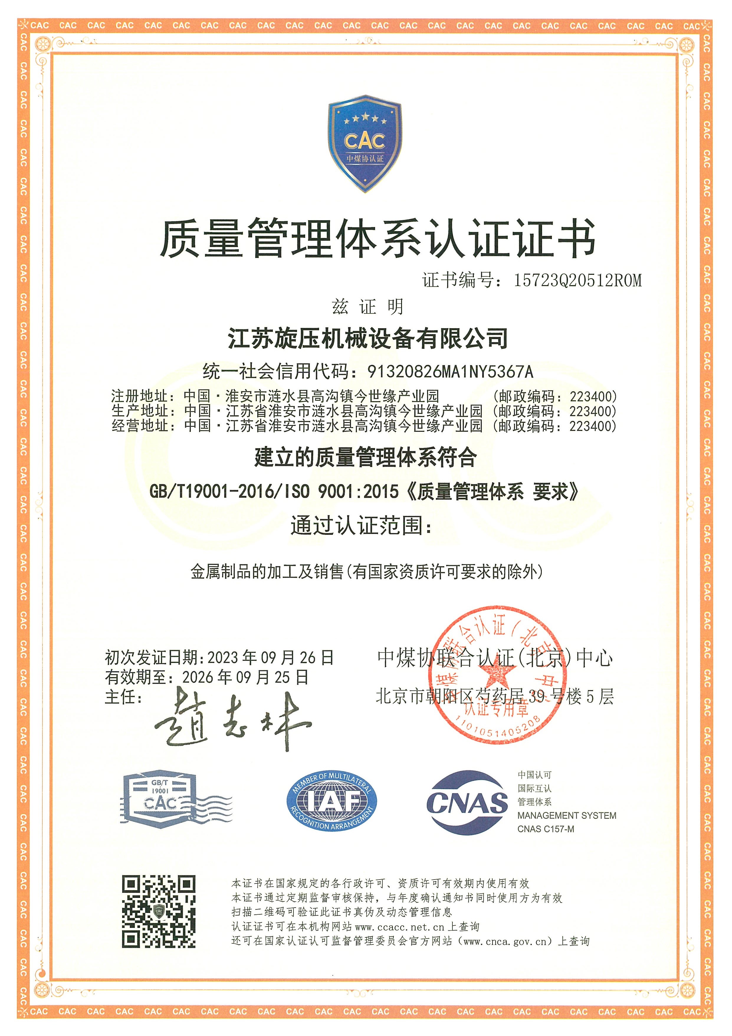 • 質(zhì)量管理體系認(rèn)證證書